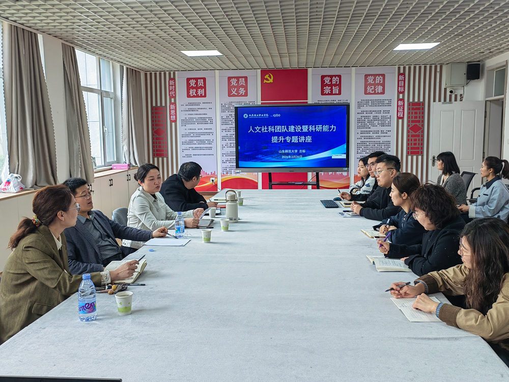 为提升学校教师人文社科研究能力、助力高水平科研课题申报与立项,3月26日,山东师范大学教育学部教授、山东职业技术教育研究院常务副院长吉标来校就人文社科课题选题、团队建设、申报书撰写、研究方法等教师普遍关心的问题做专题讲座,并就相关问题进行交流。工商管理系、艺术设计系教师代表和科研处相关人员参加讲座。